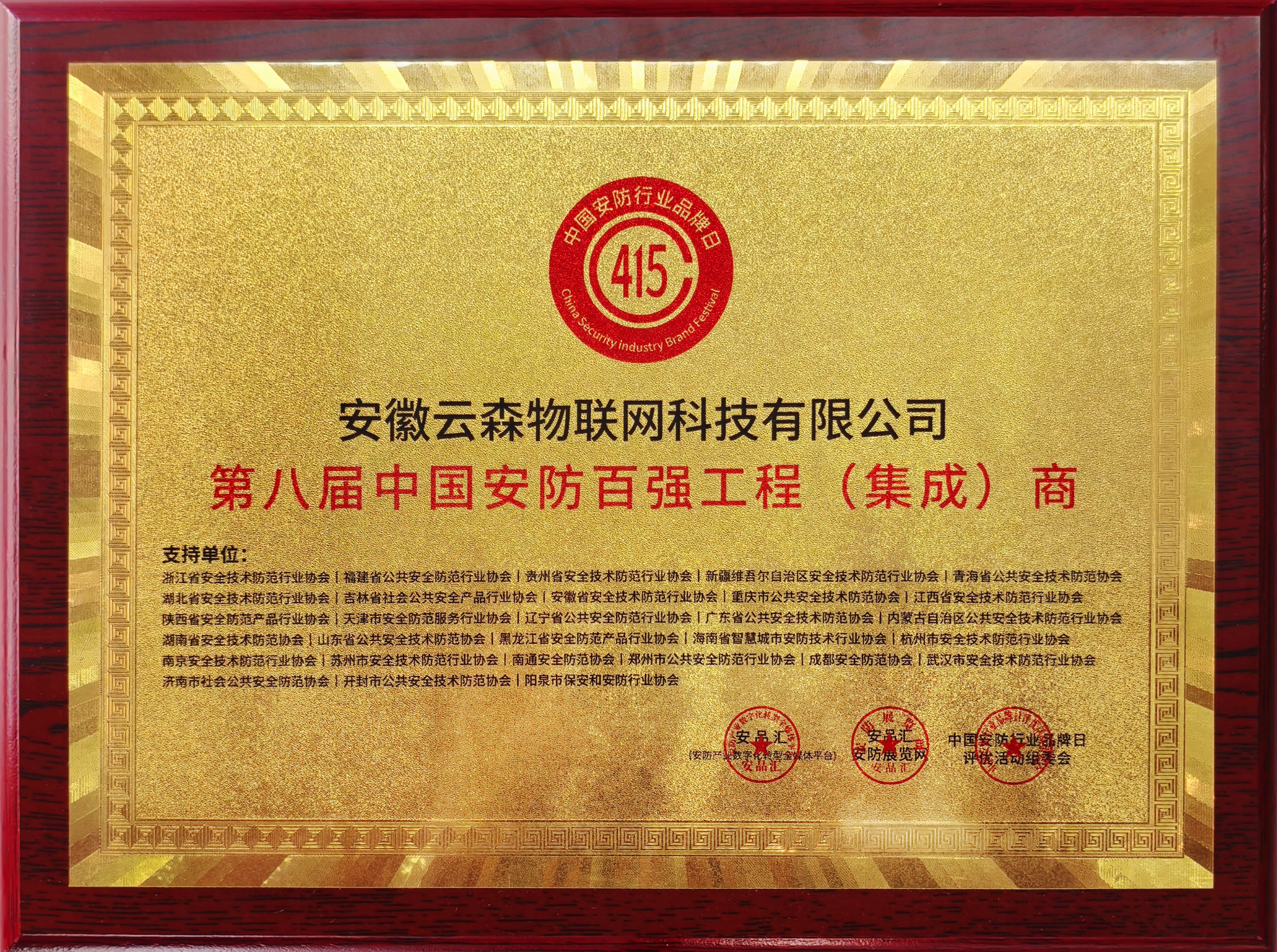 恭喜!安徽云森物聯網科技有限公司在安防領域再傳捷報,一舉斬獲“第八屆中國安...